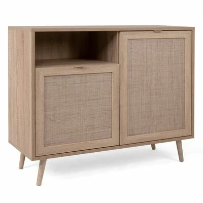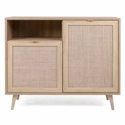 Dotée d’un style ethnique, d’une couleur claire et d’un effet de canne à sucre imprimé sur l’aggloméré, elle constitue un supplément distinctif à tout décor de pièce. L’armoire latérale Bali avec deux portes, un compartiment de rangement ouvert et une étagère à l’intérieur (sur le côté droit) offre un grand espace de rangement. Cette armoire Finori est facile à assembler et grâce à ses pieds en bois massif, elle a également un look et une stabilité exceptionnels.