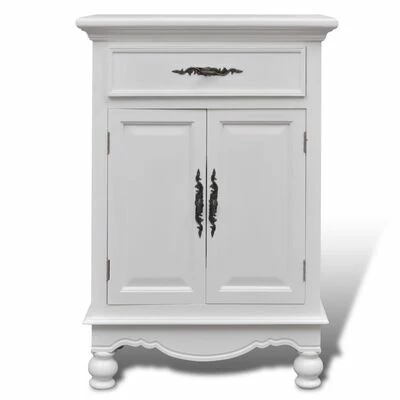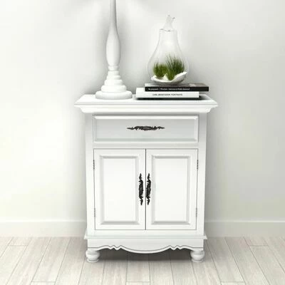 Le tiroir s’ouvre facilement pour que vous puissiez rapidement prendre tout dont vous avez besoin. Fabriquée à partir de MDF robuste et de bois de pin, l’armoire résiste bien à l’usure quotidienne. La finition de peinture blanche facilite le nettoyage avec un chiffon humide.