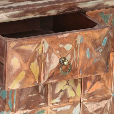 Fabriquée en bois de récupération solide, l’armoire a reçu une belle finition par polissage, peinture et laquage, lui conférant un look raffiné. L’acier enduit de poudre ajoute à la stabilité de l’armoire. Le savoir-faire exquis et les beaux grains de bois rendent chaque meuble unique et légèrement différent l’un de l’autre. De plus, deux tiroirs et deux portes offrent un grand espace de rangement pour garder vos petits objets organisés et à portée de main. L’armoire en bois est facile à assembler et à nettoyer avec un chiffon humide. Améliorez votre intérieur avec notre armoire élégante !