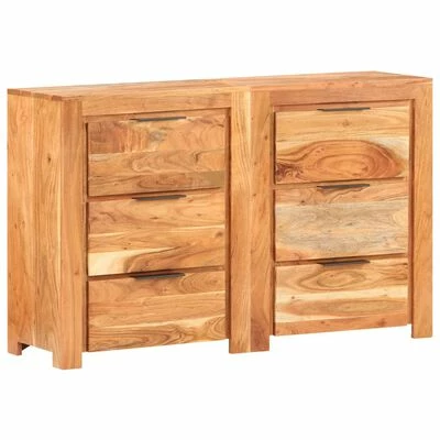 La commode est en bois d’acacia massif, ce qui la rend stable et durable. Le savoir-faire et les beaux grains de bois rendent chaque meuble unique et légèrement différent l’un de l’autre. Chaque buffet est équipé de 3 tiroirs, offrant un espace de rangement suffisant pour garder vos articles essentiels organisés et à portée de main. Remarque importante : les couleurs et les grains varient d’une pièce à l’autre, ce qui rend chaque pièce unique; la livraison est aléatoire.