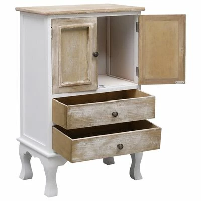Faite de paulownia de qualité, de bois de peuplier et de panneaux de MDF, cette armoire est extrêmement robuste et durable. Elle se compose de 2 tiroirs et de 2 portes pour fournir un grand espace de rangement pour vos divers objets, tels que des clés, des bloc-notes, des livres, des magazines ou d’autres bibelots et d’objets de première nécessité.