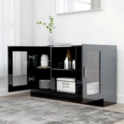 VidaXL Armoire à vitrine Noir brillant 120×30,5×70 cm Aggloméré