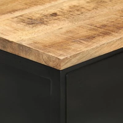 Ce buffet à la mode, en bois massif de manguier brut et en fer, est parfait pour apporter une présence classique à votre espace de vie.
