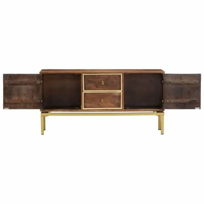 Le bois de manguier massif est un bois dur tropical. Il a d’une part la force de soutenir le poids, et d’autre part résiste à l’usure du temps. De plus, le savoir-faire exquis et les beaux grains de bois rendent chaque pièce d’armoire latérale légèrement différente l’une de l’autre. Le buffet en bois est équipé d’un grand espace de rangement, donc vous pouvez afficher ou garder bien organisés tous les articles que vous souhaitez. Les pieds en fer enduit de poudre de laiton assurent la stabilité et la durabilité de l’armoire de rangement tout en ajoutant à ses accents en laiton.