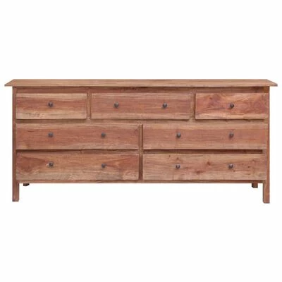 Ce buffet est en bois de récupération solide, ce qui signifie que chaque meuble est unique et légèrement différent l’un de l’autre. Les meubles en bois de récupération ont les caractéristiques de différents bois tels que le teck, le manguier et l’acacia. Le bois de récupération est solide, stable, durable et beau. Des signes d’usure et une structure de grain visible donnent à chaque pièce sa propre histoire et un look unique. Conçu avec 7 tiroirs, ce buffet a suffisamment d’espace pour garder divers articles organisés et à portée de main. Grâce aux pieds en bois massif, ce buffet est très robuste et durable. De plus, les boutons de tiroir en laiton ajoutent au style vintage de l’armoire de rangement. Il peut également être utilisé comme armoire de rangement ou meuble TV. Le dessus du meuble est idéal pour afficher la télévision et des objets décoratifs tels que des cadres photo ou des plantes en pot.