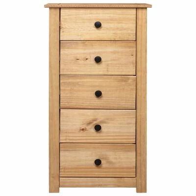 Fabriquée en bois de pin massif, cette armoire à tiroirs Panama est extrêmement durable et robuste. Le buffet offre un grand espace de rangement avec 5 tiroirs. De plus, le dessus robuste est parfait pour exposer des objets décoratifs, des cadres photo et des plantes en pot. Il est facile à essuyer avec un chiffon sec. Le support de téléphone est facile à assembler.