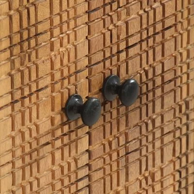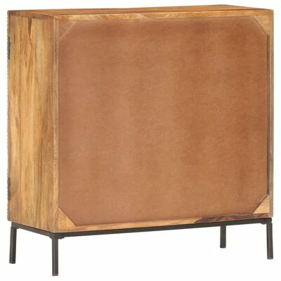 L’armoire latérale, avec des motifs sculptés à la main à l’avant, est faite à la main en bois de manguier massif qui est un bois dur dense et robuste avec des belles stries et des contours bruns ou dorés sur sa surface. Chaque étape du processus est réalisée avec le plus grand soin, qu’il s’agisse de polissage ou de laquage, et le savoir-faire ajoute au style rétro spectaculaire. Les beaux grains de bois rendent chaque meuble unique et légèrement différent l’un de l’autre. Le cadre en acier enduit de poudre ajoute au style industriel du buffet. En outre, cette armoire comprend 2 portes, offrant suffisamment d’espace pour garder toutes sortes de petits objets organisés et à portée de main. L’article est facile à assembler.