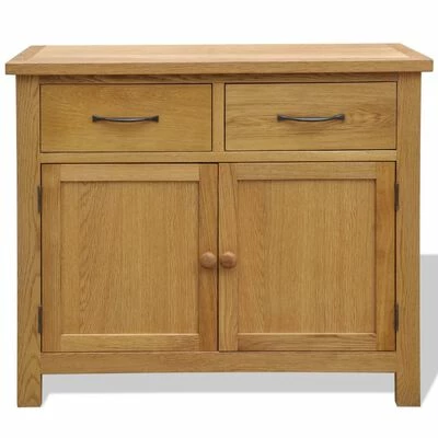 Notre buffet en bois a été construit en bois de chêne de haute qualité. Avec deux armoires et deux tiroirs spacieux, il dispose d’un amplement espace de rangement. Car il a une profondeur raisonnablement étroite, il est adéquat aussi aux entrées.