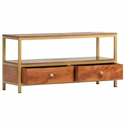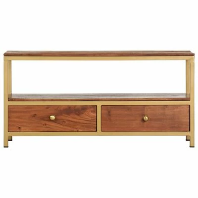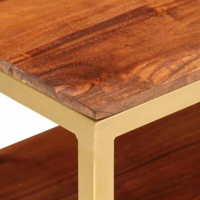 Le buffet est en bois d’acacia massif qui a reçu une belle finition par polissage, peinture et laquage pour fournir un look raffiné. La table est entièrement faite à la main, et les beaux grains de bois rendent chaque meuble unique et légèrement différent l’un de l’autre. Ses pieds en fer avec revêtement en poudre de laiton ajoutent à sa robustesse. Il a un dessus robuste, sur lequel vous pouvez placer une corbeille de fruits, un vase ou d’autres objets décoratifs. Deux tiroirs et une grande étagère vous offrent suffisamment d’espace pour ranger des livres, des magazines, des blocs-notes ou d’autres articles essentiels et les garder propres et bien rangés.