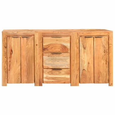 Cet ensemble est fabriqué en bois d’acacia massif, ce qui le rend stable et durable. Le savoir-faire et les beaux grains de bois rendent chaque meuble unique et légèrement différent l’un de l’autre. Il dispose de 4 portes et de 3 tiroirs, offrant un espace de rangement suffisant pour ranger vos articles essentiels organisés et à portée de main.
