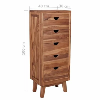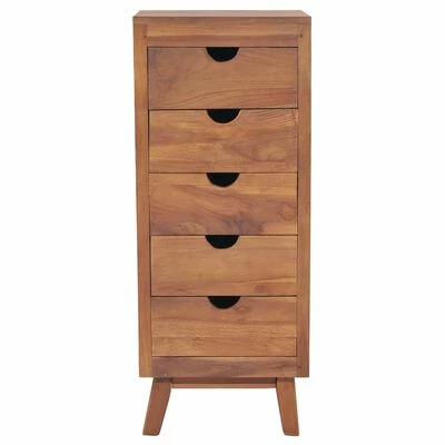 Cette armoire latérale est faite de bois de teck massif avec une finition de couleur recyclée, connu pour sa résistance exceptionnelle. Chaque étape du processus est réalisée avec le plus grand soin, que ce soit le polissage, la peinture ou le laquage. Cette armoire a un dessus robuste, idéal pour exposer des objets décoratifs, des cadres photo, ou même des plantes en pot. Les 5 tiroirs offrent un espace suffisant pour garder toutes sortes d’articles organisés et à portée de main.