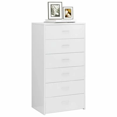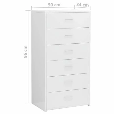VidaXL Buffet avec 6 tiroirs Blanc brillant 50x34x96 cm Aggloméré