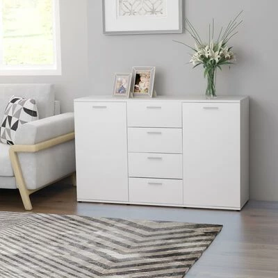 Avec 2 portes et 4 tiroirs, le buffet offre un grand espace de rangement pour les livres, les appareils multimédia et autres articles. Le dessus de table robuste est idéal pour afficher des objets décoratifs, des cadres photo ou des plantes en pot. Grâce au matériau en bois d’ingénierie haut de gamme, ce buffet est stable et conçu pour durer. De plus, l’armoire à tiroirs est facile à nettoyer avec un chiffon humide.