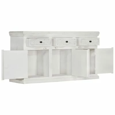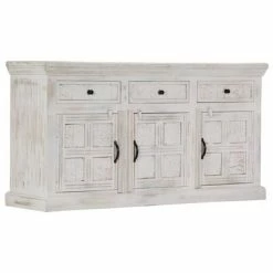 Le meuble est en bois de manguier massif, un bois dur aux grains denses. Le bois de manguier brut a non seulement la force de supporter le poids, mais il résiste aussi à l’usure du temps. Par conséquent, ce meuble au design magnifique est extrêmement stable, durable et esthétiquement attrayant. Les grains de bois exquis rendent chaque meuble distinctif et légèrement différent l’un de l’autre. Ce meuble dispose de 3 tiroirs et de 3 armoires à 3 portes, offrant suffisamment d’espace pour ranger vos chaussures, livres, ainsi que d’autres articles divers.