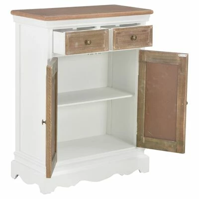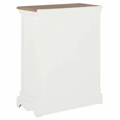 L’armoire latérale de style maison de campagne est faite de bois massif avec une finition à peinture, ce qui lui donne un aspect raffiné et la rend facile à nettoyer avec un chiffon humide. L’armoire en bois possède deux tiroirs et deux compartiments de rangement avec portes pour un espace de rangement supplémentaire. De plus, ces boutons classiques s’ajoutent au style vintage de l’armoire de rangement. Le produit est facile à assembler.