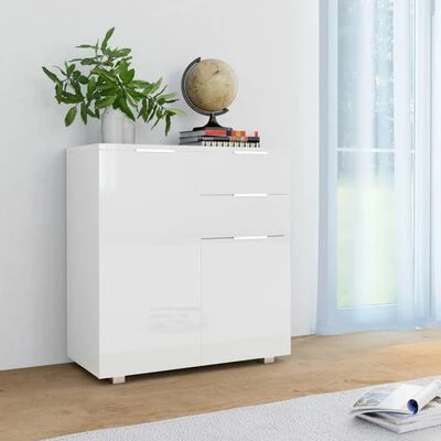 Fabriqué en aggloméré avec une finition haute brillance, donnant à la commode un look raffiné et la rendant extrêmement stable et durable. De plus, équipé de 2 tiroirs et 2 portes, le buffet offre un grand espace de rangement pour vos divers objets, rendant votre pièce propre et bien rangée. Ce meuble de rangement haute brillance est facile à nettoyer.