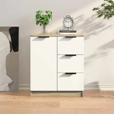VidaXL Buffet Blanc et chêne sonoma 60x30x70 cm Bois d’ingénierie