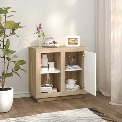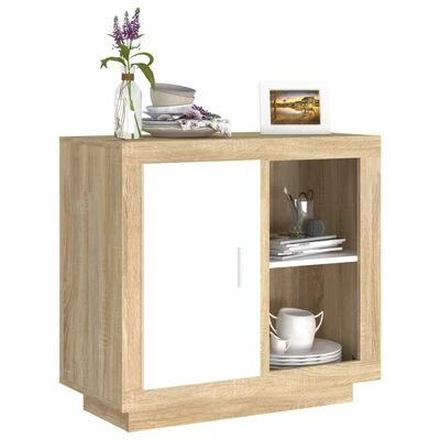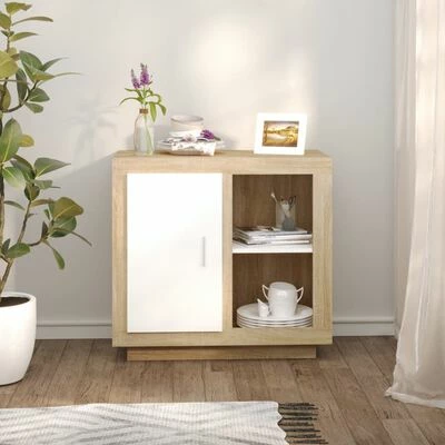VidaXL Buffet Blanc et chêne sonoma 80x40x75 cm