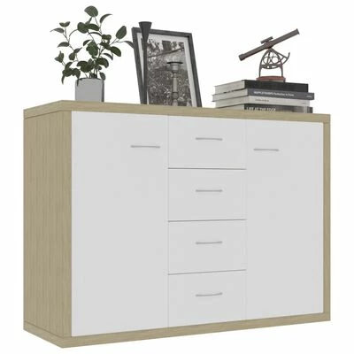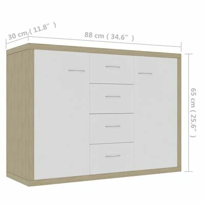 VidaXL Buffet Blanc et chêne sonoma 88x30x65 cm Aggloméré