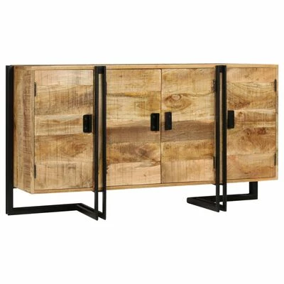 Le buffet est en bois de manguier massif, très stable et durable. Le bois de manguier est un bois dur fort et dense qui a des belles stries et des contours bruns ou dorés sur sa surface. Le dessus robuste est idéal pour placer des objets décoratifs comme des vases ou des plantes en pot. L’armoire offre suffisamment d’espace de rangement pour ranger divers articles ménagers. Les cadres en acier renforcent le style industriel de l’armoire. Un grand soin a été apporté à chaque étape du processus de fabrication, que ce soit le polissage, la peinture et le laquage. L’assemblage est facile.