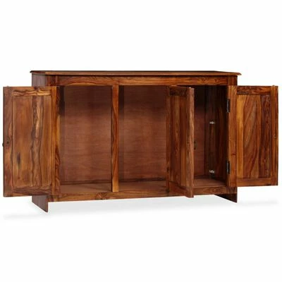 Fabriqué en bois solide de Sesham, le meuble est stable, durable et facile à entretenir. Le Sesham est un bois dur tropical réputé pour ses grains riches et aussi appelé le bois de rose ou le palissandre. Le dessus robuste est idéal pour placer des lampes, de la nourriture et des boissons ou des objets décoratifs tels que des cadres photo, des paniers de fruits ou des vases. Le grand meuble offre un vaste espace de rangement pour ranger divers articles ménagers. Chaque étape du processus de construction est effectuée avec le plus grand soin, qu’il s’agisse du polissage, de la peinture ou du laquage. L’assemblage est facile.