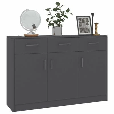 Avec 3 tiroirs et 3 portes, le buffet offre un espace de stockage suffisant pour les livres, les appareils multimédia et d’autres articles. Le dessus du buffet robuste est idéal pour exposer des objets décoratifs, des cadres photo ou des plantes en pot. Il peut également être utilisé comme table basse, armoire latérale, etc. Grâce au matériau en MDF de de qualité supérieure, ce buffet est durable.
