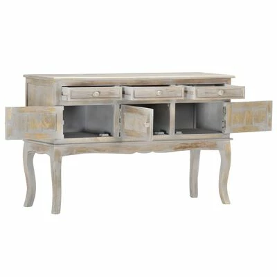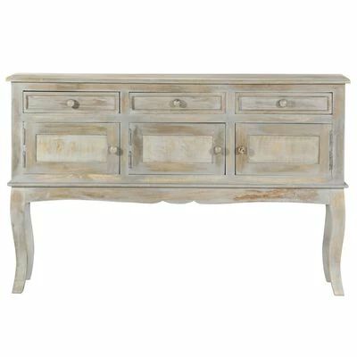 L’armoire latérale est fabriquée en bois de manguier massif qui est un bois dur dense et robuste avec des belles stries et des contours bruns ou dorés sur sa surface. Chaque étape du processus est réalisée avec le plus grand soin, que ce soit le polissage ou le laquage et l’artisanat ajoute au spectaculaire style français. En outre, ce buffet dispose de 3 tiroirs et 3 portes, offrant suffisamment d’espace pour garder toutes sortes de petits objets organisés et à portée de main. L’article est facile à assembler.