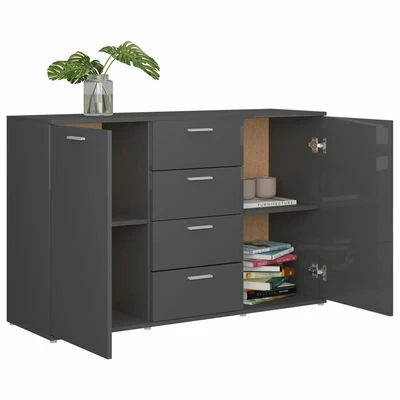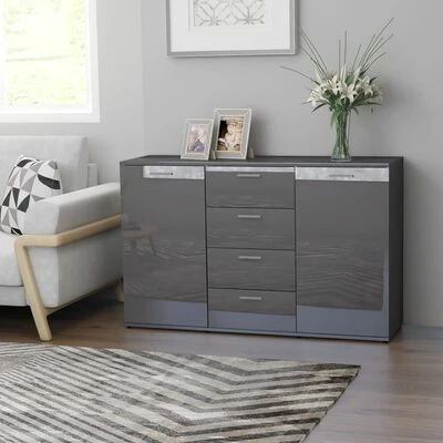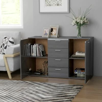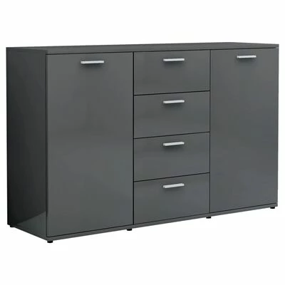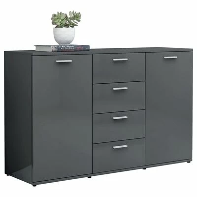 Avec 2 portes et 4 tiroirs, le buffet offre un grand espace de rangement pour les livres, les appareils multimédia et autres articles. Le dessus de table robuste est idéal pour afficher des objets décoratifs, des cadres photo ou des plantes en pot. Grâce au matériau en aggloméré haut de gamme, ce buffet est stable et conçu pour durer. De plus, l’armoire à tiroirs est facile à nettoyer avec un chiffon humide.