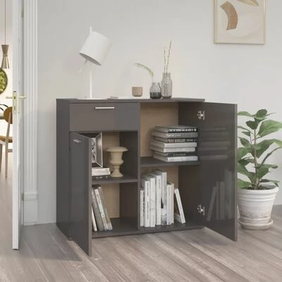 VidaXL Buffet Gris brillant 80x36x75 cm Aggloméré