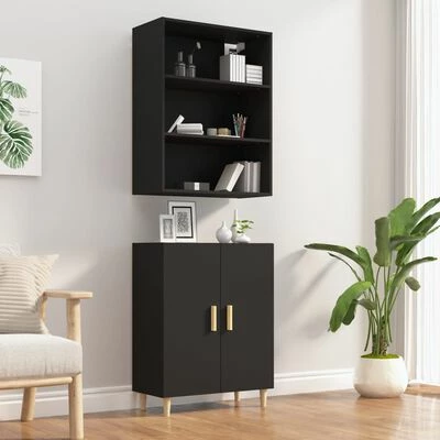 VidaXL Buffet haut Noir Bois d’ingénierie