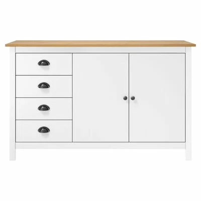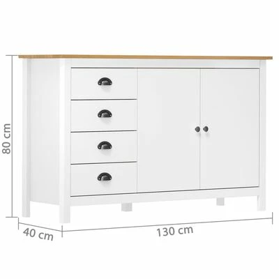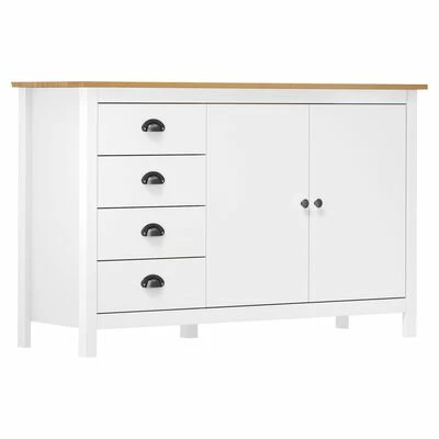Cette armoire latérale est en bois de pin massif, ce qui la rend stable et robuste. Grâce à ses 2 portes et ses 4 tiroirs spacieux avec poignées, l’armoire à tiroirs offre beaucoup d’espace de rangement pour garder toutes sortes d’articles dans l’ordre et à portée de main.