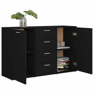 Avec 2 portes et 4 tiroirs, le buffet offre un grand espace de rangement pour les livres, les appareils multimédia et autres articles. Le dessus de table robuste est idéal pour afficher des objets décoratifs, des cadres photo ou des plantes en pot. Grâce au matériau en aggloméré haut de gamme, ce buffet est stable et conçu pour durer. De plus, l’armoire à tiroirs est facile à nettoyer avec un chiffon humide.