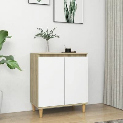 VidaXL Buffet pieds en bois Blanc et chêne sonoma 60x35x70cm Aggloméré