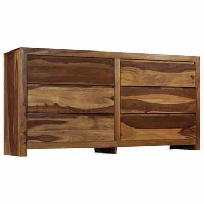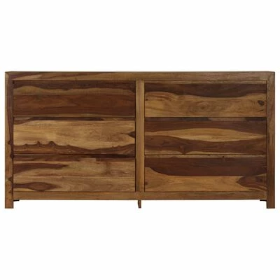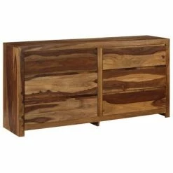 Le buffet est en bois massif de Sesham et est très stable et durable. Le Sesham est un bois dur tropical qui est célèbre pour ses grains riches et aussi connu sous le nom de bois de rose ou palissandre. Le dessus robuste est idéal pour placer vos objets décoratifs comme des vases ou des plantes en pot. Les tiroirs offrent un espace de rangement pour ranger les différents objets de manière ordonnée et à portée de main. Chaque étape du processus de fabrication est réalisée avec le plus grand soin, que ce soit le polissage, la peinture ou le laquage. Cet élément est déjà assemblé ; aucun assemblage n’est requis.