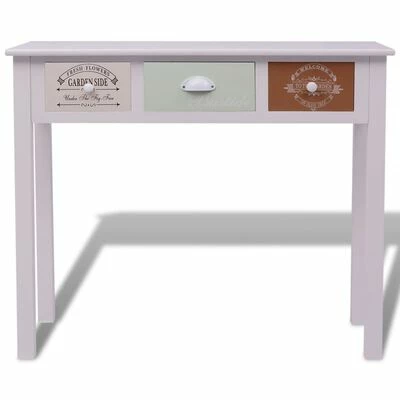 Cette table en style d’époque est doté de 3 tiroirs coulissants qui fournissent amplement d’espace de rangement pour vos effets personnels et gardent votre chambre organisée. Le tiroir médian est peint en vert clair élégant. Les 2 tiroirs latéraux, avec des gravures en style d’époque, ajoutent du charme rustique au meuble. Les tiroirs latéraux sont échangeables.